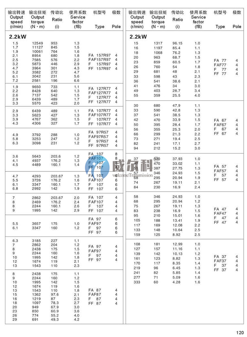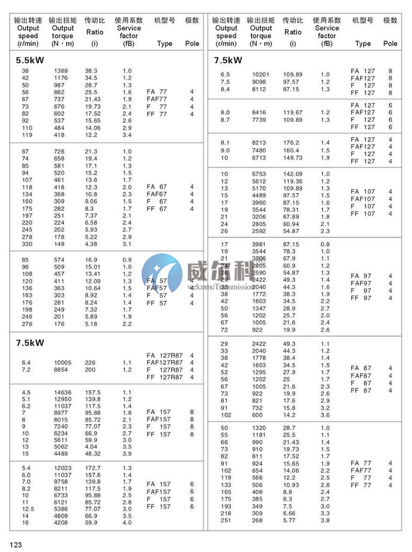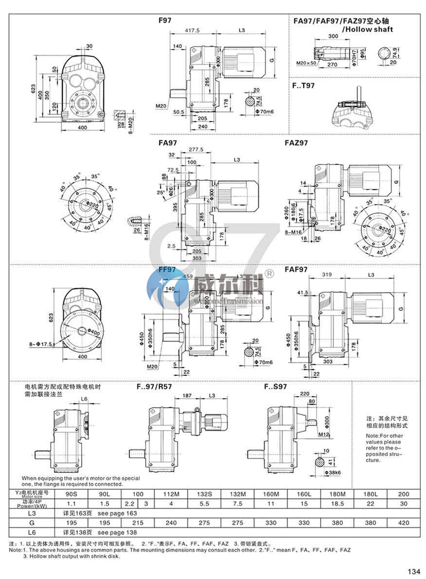 F-軸伸式、底腳安裝FA-軸裝式聯(lián)接